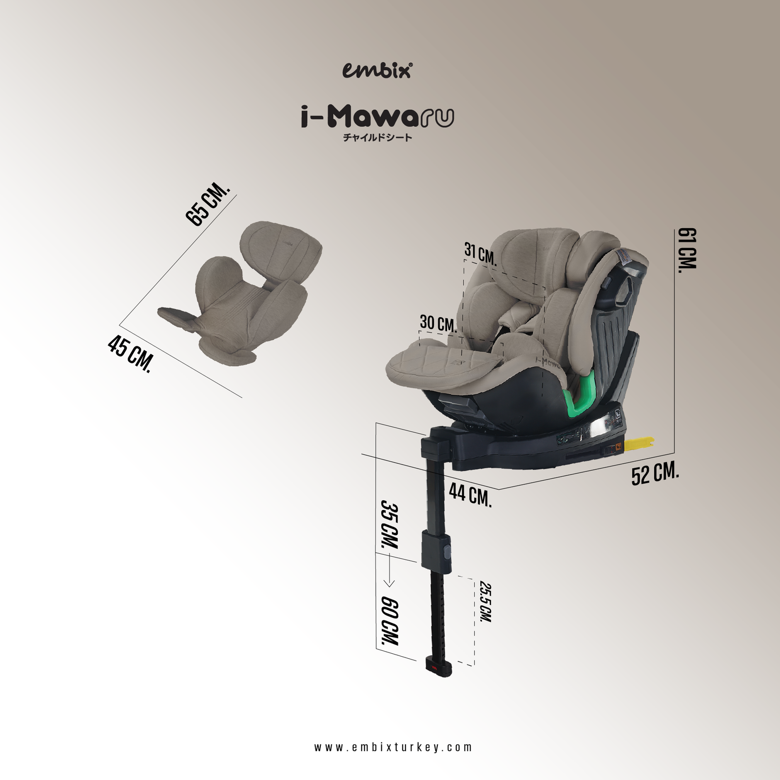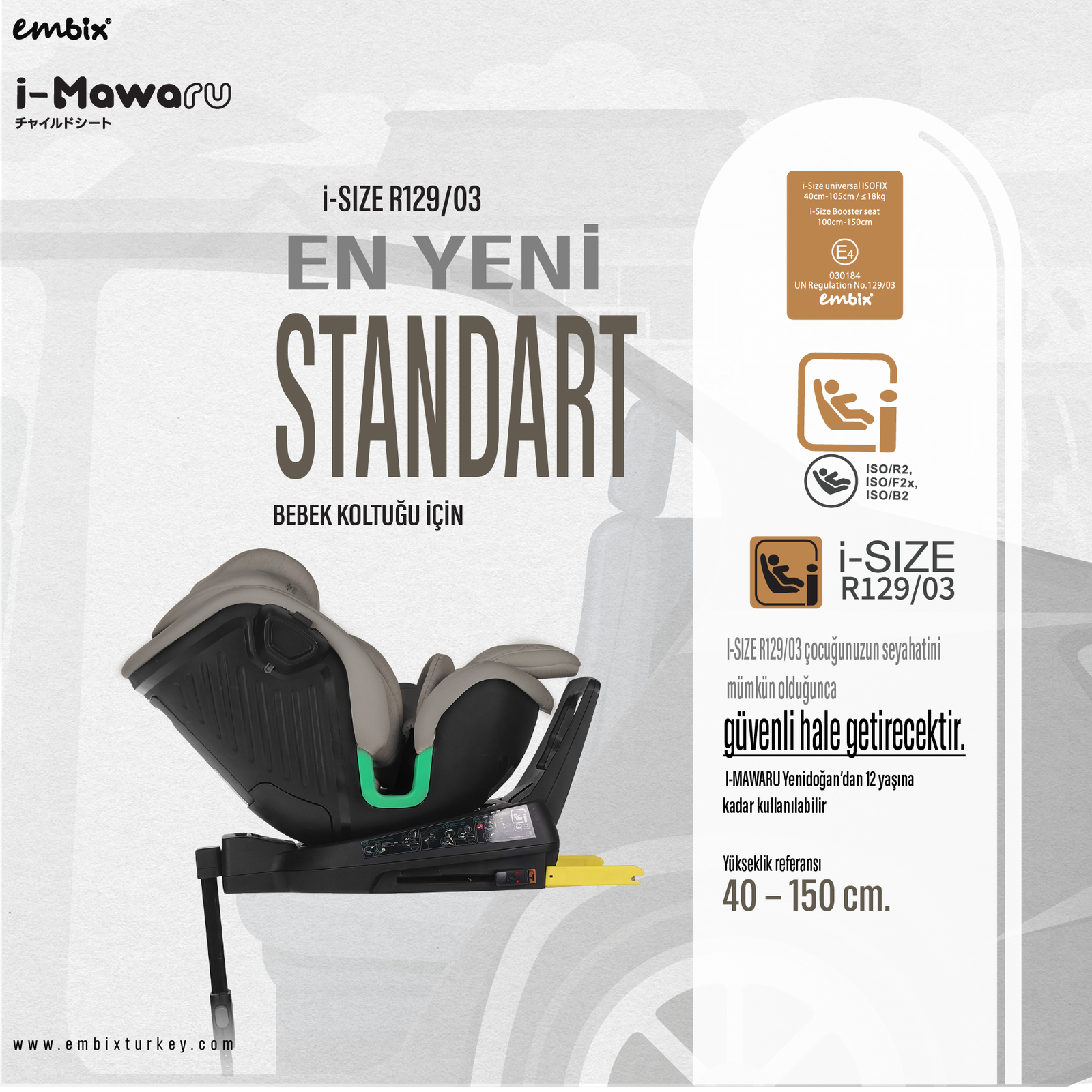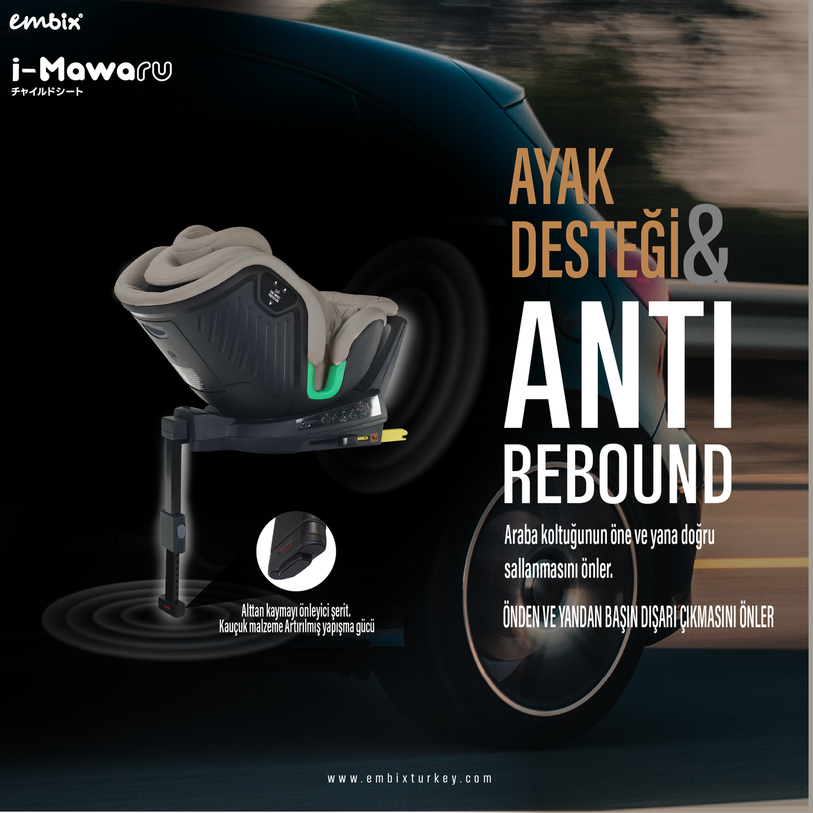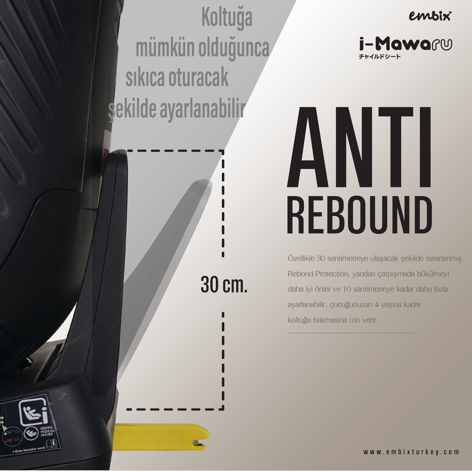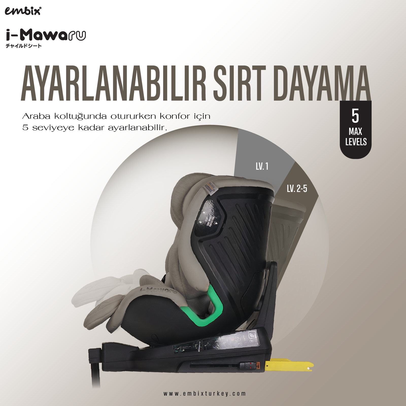 360° Dönebilen Gövde: Kapı tarafına dönerek bebeğinizi kolayca yerleştirip çıkarabilmenizi sağlar; sabitlenebilen 3 kilit pozisyonu bulunur.