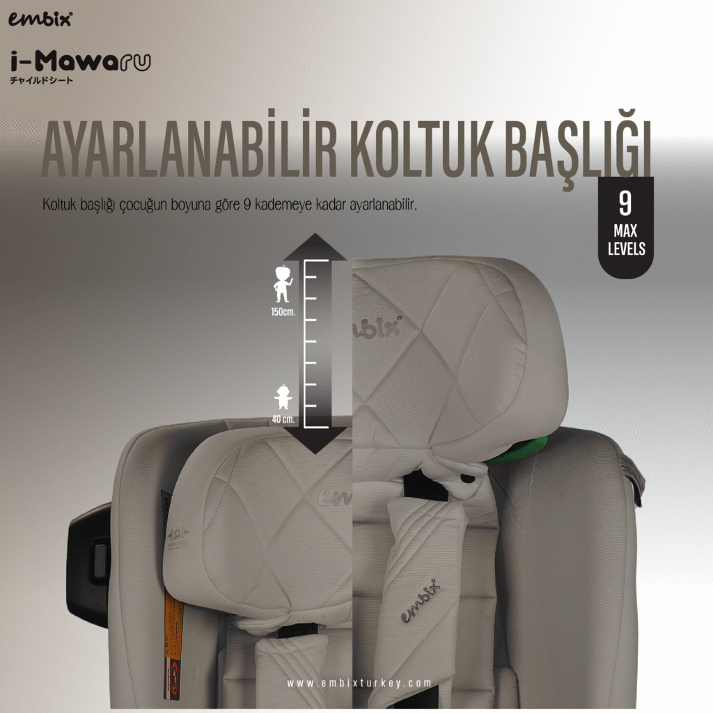 9 Seviyeli Ayarlanabilir Baş Dayanağı: Bebeğin boyuna göre kolayca ayarlanabilir baş destek sistemi .